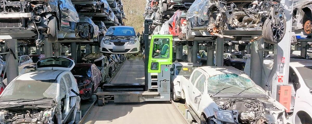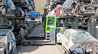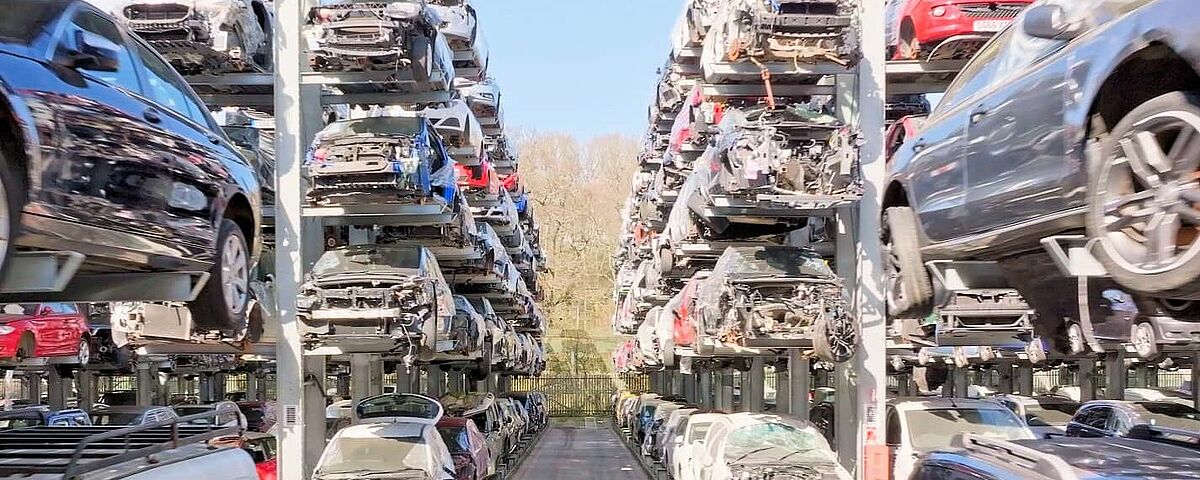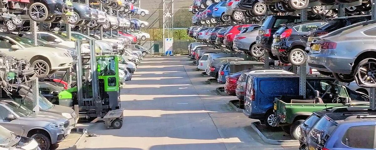 Pour avoir en permanence un accès direct au plus grand nombre possible de véhicules hors d’usage, Silverlake Automotive Recycling, Hampshire, stocke des véhicules de tourisme, SUV et camionnettes dans des rayonnages cantilever de OHRA. Grâce à des rayonnages de plus de 8 mètres de haut, cinq véhicules pesant jusqu’à 2 tonnes chacun peuvent être « empilés » les uns sur les autres. Les rangées de rayonnages sont en outre équipées de rails de guidage de manière à permettre l’entrée et la sortie des véhicules hors d’usage avec un chariot latéral. Cela permet d’avoir des allées particulièrement étroites entre les rayonnages et d'installer plus de rayonnages sur la surface. Silverlake peut ainsi stocker sur site environ 2 500 véhicules hors d'usage.
